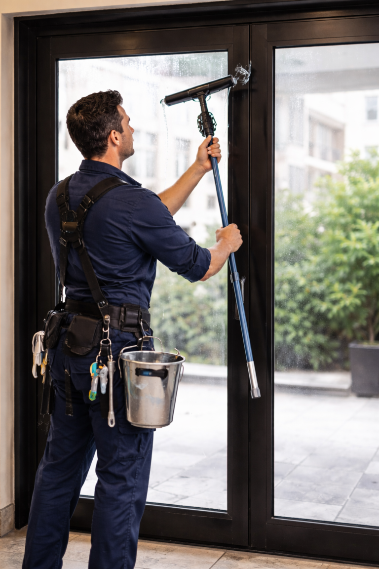 Nous réalisons le nettoyage des vitreries pour offrir une transparence impeccable et valoriser l’image de votre résidence.